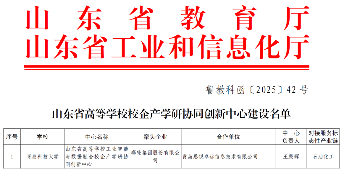 喜报!学院获批山东省高等学校工业智能与数据融合校企产学研协同创新中心
