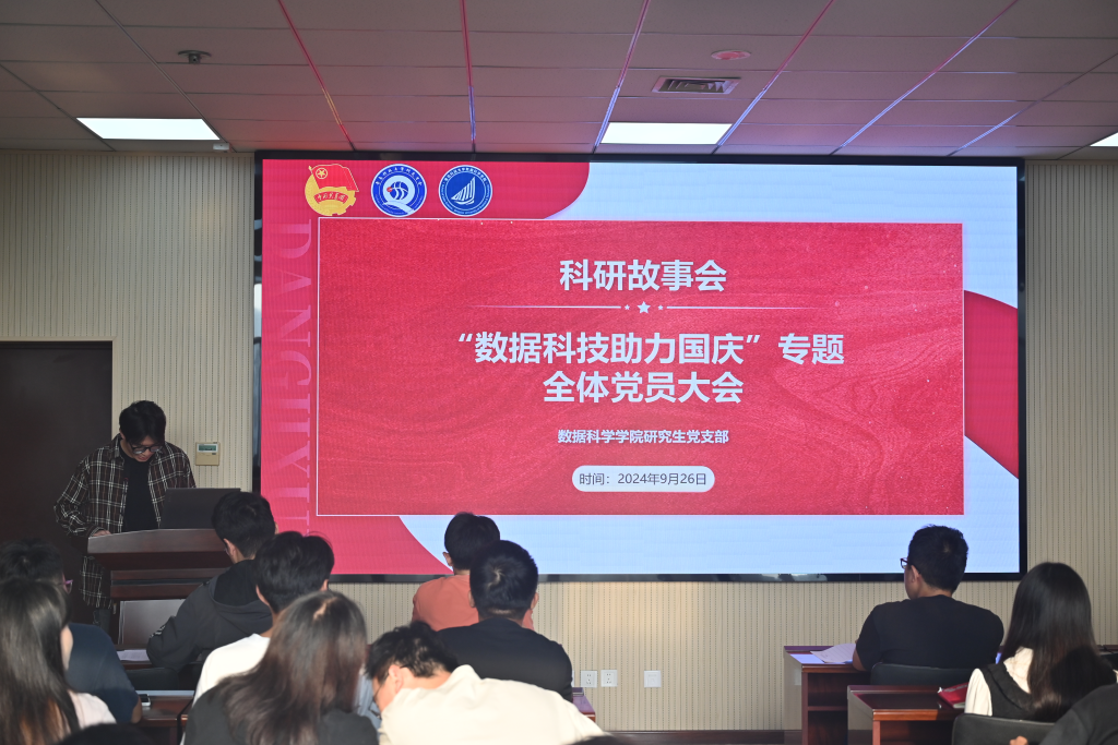 太阳集团tyc234cc研究生党支部于2024年9月26日召开支部党员大会,以科研故事会的形式进行“数据科技助力国庆”专题全体党员大会。