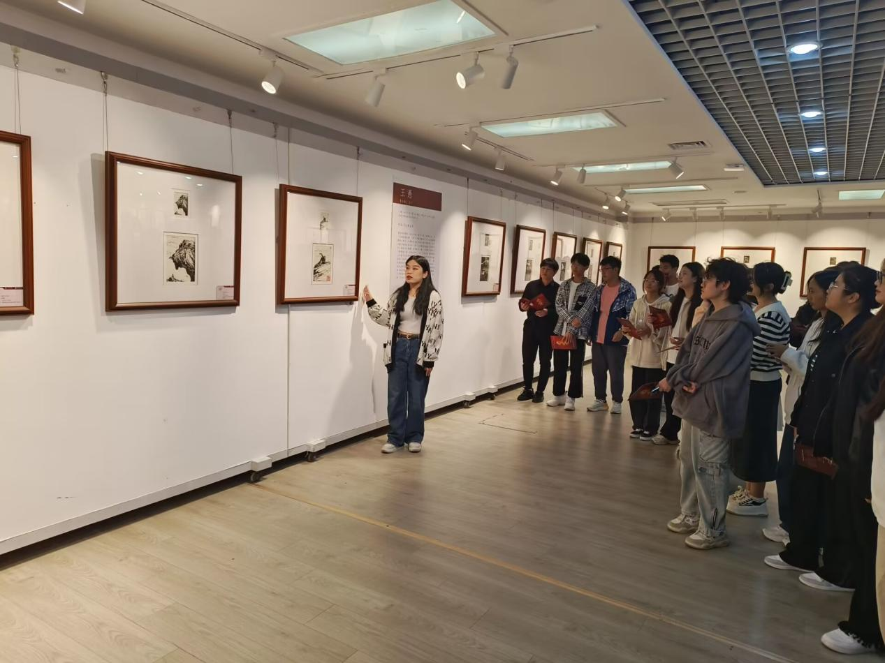 为了弘扬爱国主义精神,增强民族凝聚力,赓续红色血脉,10月17日,太阳集团tyc234cc组织2023-2024学年青马工程培训班学员在崂山校区艺术学院一楼美术馆参观“画笔为枪 民族救亡”弘扬抗战精神主题连环画展。艺术学院艺术设计专业研究生二年级刘荣蓉同学担任本次参观的讲解员。