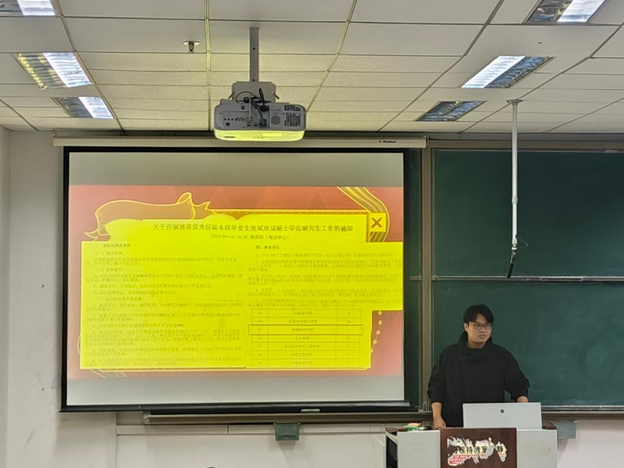 宫传政对保研政策进行解读与分析,向同学们详细地介绍了保研报名条件、考核方式与录取规则等问题,他还就专业排名、外语成绩、科技竞赛、材料准备过程等部分进行了重点分析,提醒同学们把握好时间节点,提早做准备。