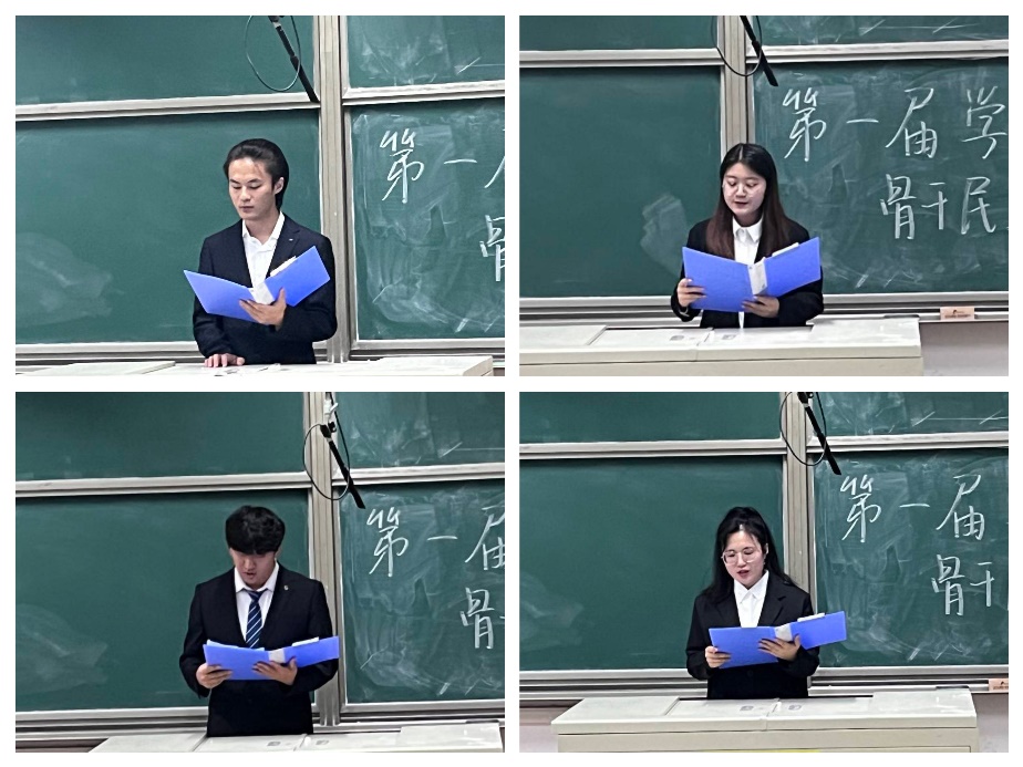 本次推荐会分为主席团推荐会和学生骨干推荐会两部分。各位竞选者按照顺序依次上台演讲,从自我介绍、职位认识、个人优势及未来展望等方面详细阐述,竞选者们从容自若,神采奕奕,展现了能够胜任未来工作的精神面貌。评委根据每个竞选者的发言特点进行了有针对性的提问,并且提出了自己对竞选者们的建议及要求。