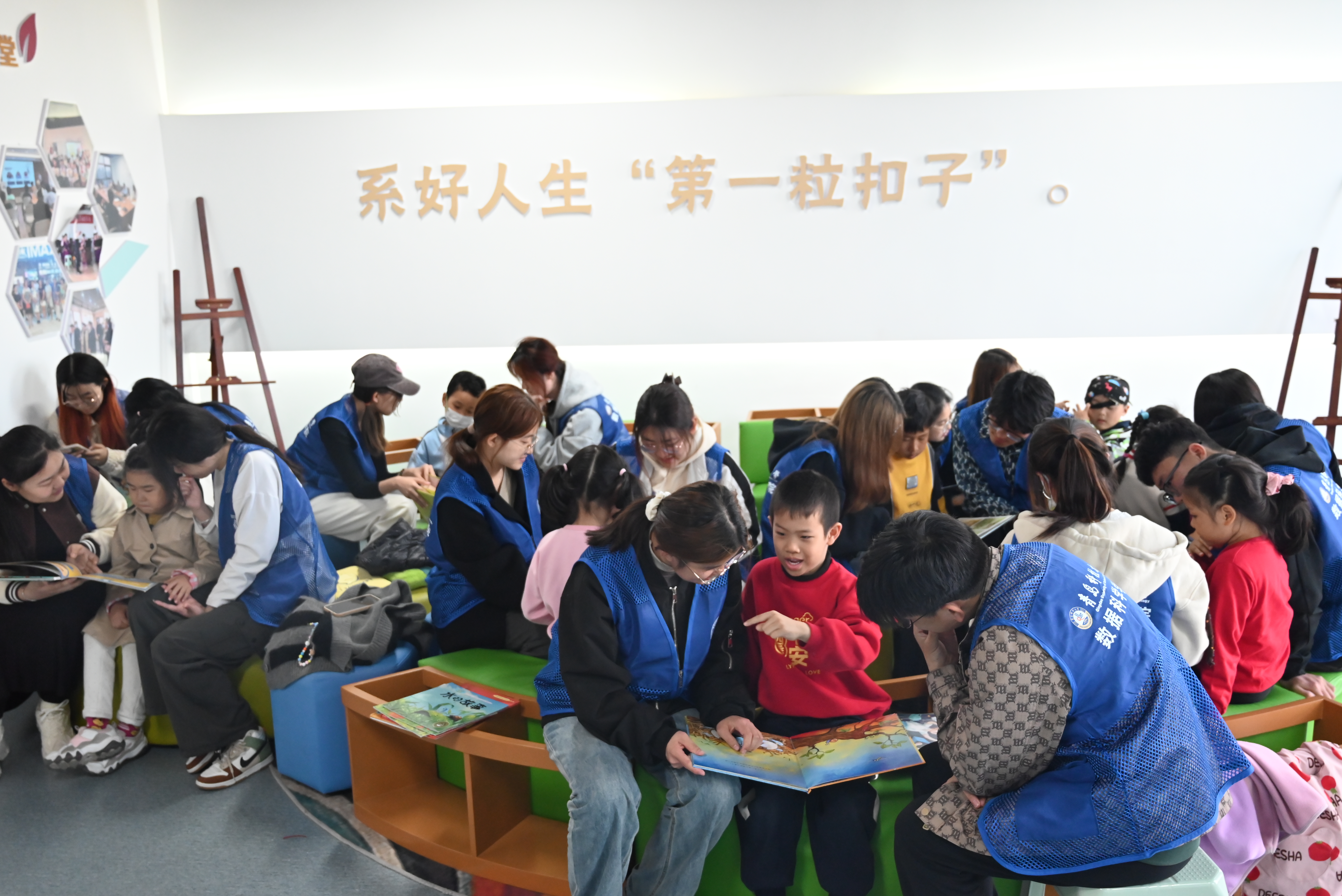 活动现场,志愿者们精神饱满,热情主动地与小朋友组队。在经过简单的开场白后,志愿者引导小朋友们介绍自己,主动破冰,随后正式开始伴读活动。志愿者们带领着小朋友认真挑选了适合他们年龄段的书籍,通过互动式阅读,角色扮演等形式,让阅读变得有趣,调动了小朋友们的积极性。在这个过程中,小朋友们的阅读能力得到了提升,同时也提高了他们的表达能力。