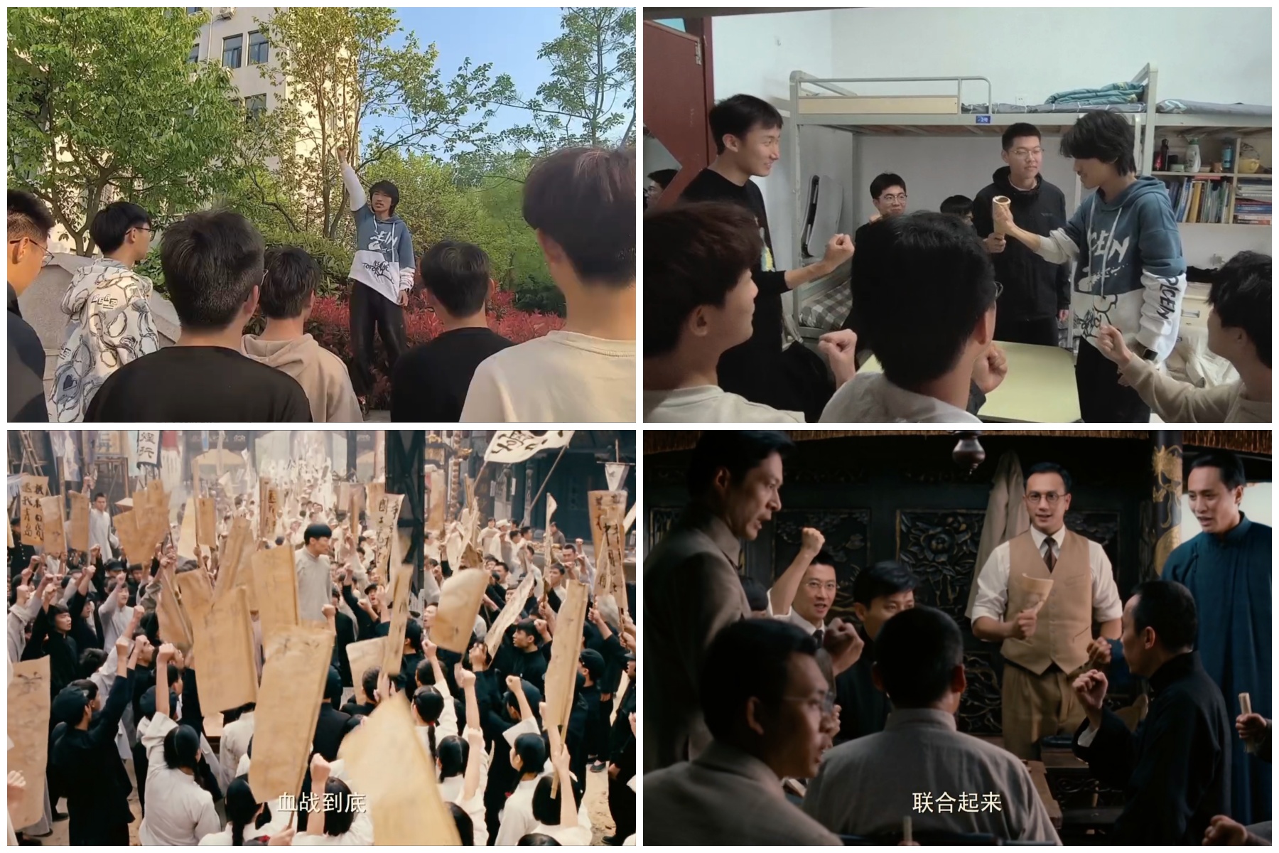 岁月流转,精神永存。太阳集团tyc234cc充分调研当下学生喜闻乐见的活动方式,举办“青春回响·‘五四’精神站位复刻活动”。数科学子通过跨越时空的转场手法,录制转场视频,复刻中国近代史名场面、红色影视作品经典镜头,将历史画面与现代相结合,实现了穿越时空的对话。用镜头记录历史,用情感连接现代与未来,表达了数科学子对祖国的热爱,发出属于当代青年人的独特声音。