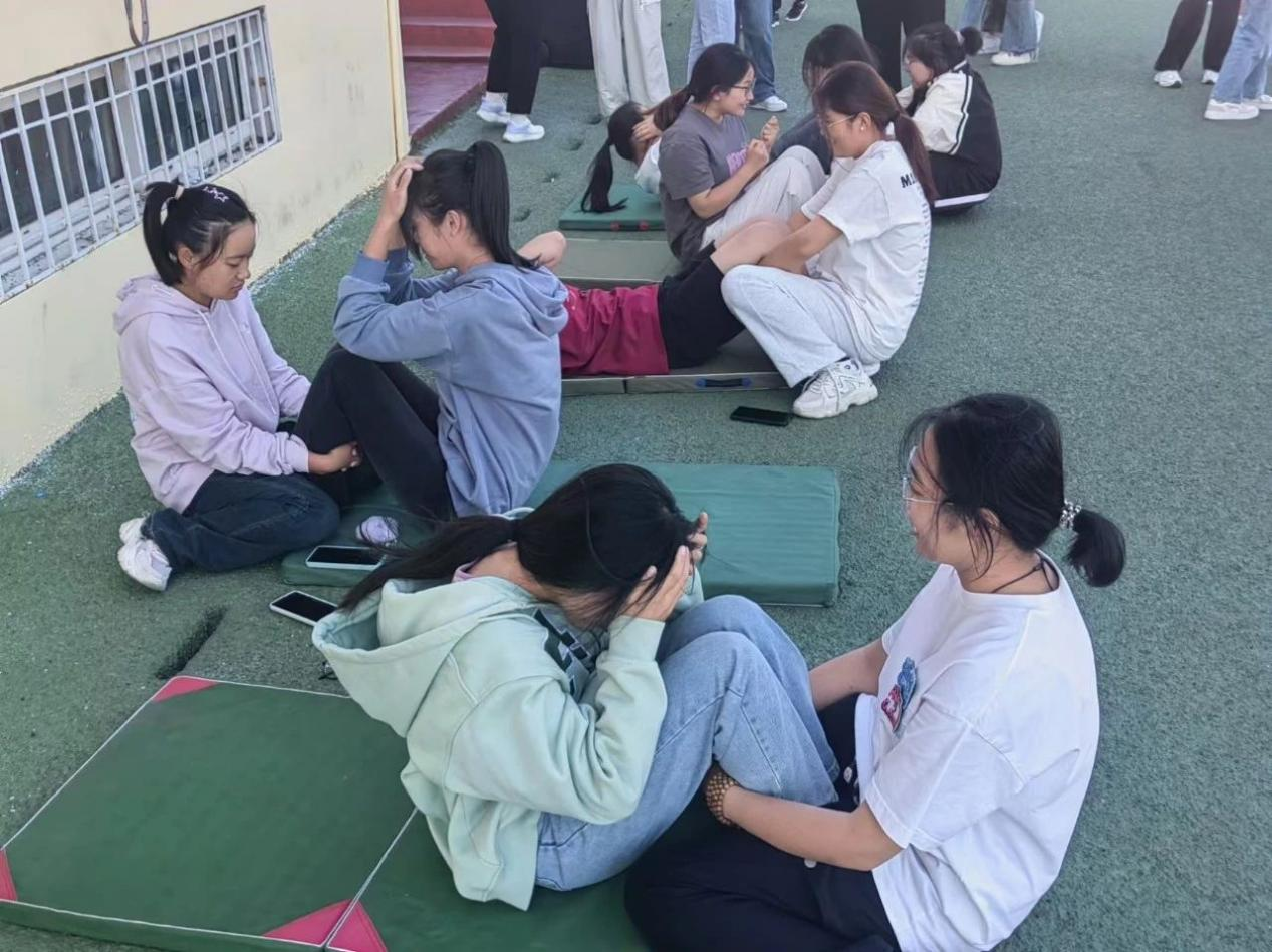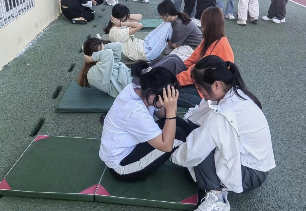 女生组在仰卧起坐项目中表现抢眼,展现了巾帼不让须眉的精神,现场氛围热烈。
