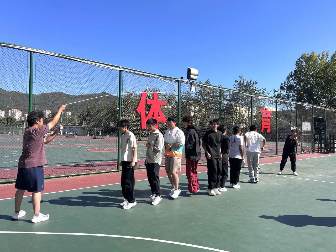 以小组为单位的跳绳比赛紧张激烈,最终董娇队长的小组以47个的成绩夺冠,王深卓、王豪队长的小组分别获得第二、三名。
