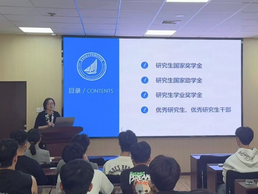 会上,顾姗姗详细介绍了研究生的评奖评优制度,鼓励学生积极参加学科竞赛活动,同时提醒同学们在追求学术进步的同时,也要关注自己的心理状态,保持身心健康。