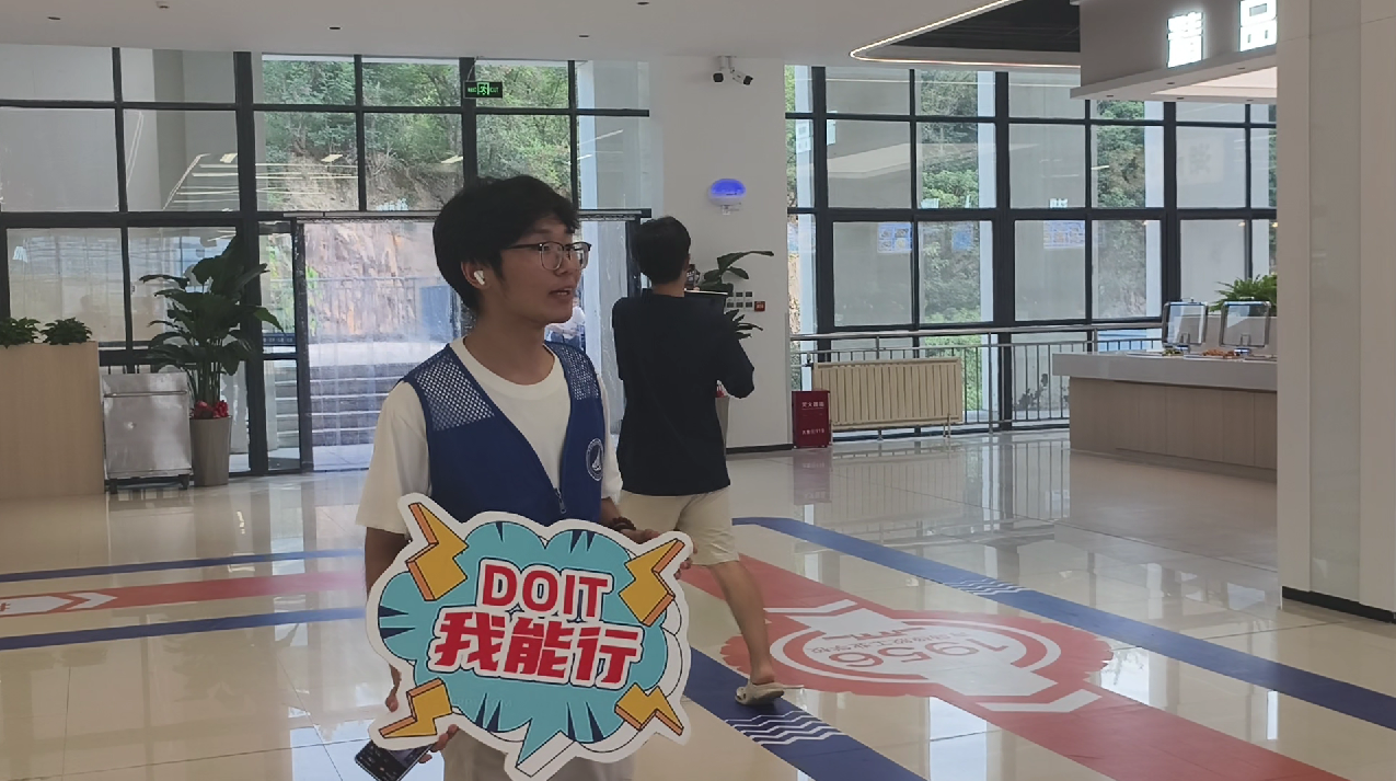 在“分场景讲解”环节,四位同学分别围绕新生最为关心的学习、生活与住宿空间进行沉浸式介绍。图书馆由大数据242班王文栋同学讲解,重点介绍馆藏与功能分区、自习与预约规则、开放时段及入馆规范,弘毅楼、明德楼由大数据231班张雪玲同学讲解,围绕教学楼分区与教室类型、晚间关楼提示等进行说明,北苑食堂由人工智能243班李朋霏同学讲解,介绍餐饮楼层与业态、就餐文明与卫生管理、支付方式及周边生活配套,南一宿舍由人工智能241班菅梦菲同学讲解,围绕宿舍房型与公共设施、用电与供暖时段、浴室预约与安全管理等作出提示。直播同步开放互动问答,“宿舍是否配备独立卫浴”“清真餐窗口位置”“图书馆如何预约”等常见问题由讲解同学与主持人现场解答。