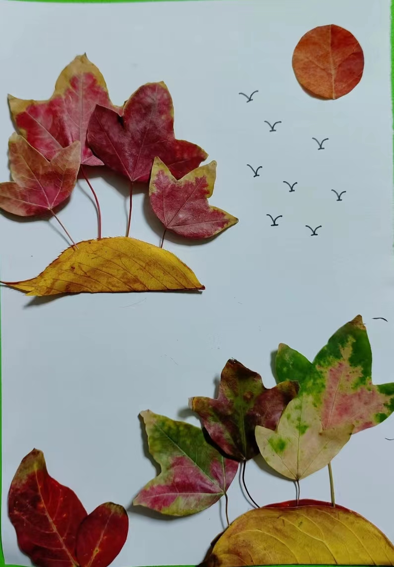 活动反响热烈,收到了许多同学的优秀作品。他们利用大小、颜色、形状各不相同的树叶进行创作,通过巧妙的构思和精心的粘贴,将树叶转化成了各种富有创意的作品。有的同学利用树叶展现了动人的风景,有的则刻画出了一条条形象生动的小鱼,还有的制作出了精美的立体蝴蝶。无论是独自创作,还是与他人合作,这些作品都充分展示了同学们对美的独特追求,使他们感受到了树叶贴画的乐趣和创意。