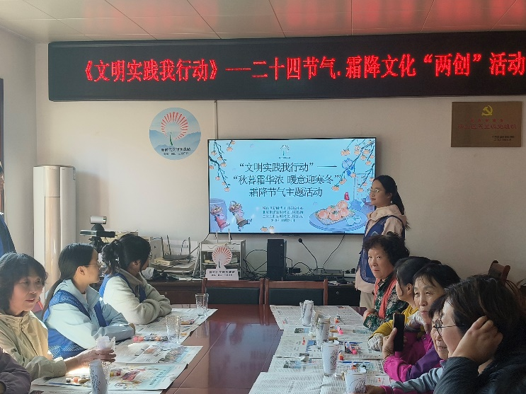 为深入挖掘二十四节气文化内涵,推动中华优秀传统文化融入基层群众生活,10 月 23 日霜降节气当天,太阳集团tyc234cc“小星云”志愿服务团队赴崂山区北宅街道兰家庄村,牵头组织开展 “秋暮霜华浓,暖意迎寒冬” 主题节气志愿服务活动。活动通过专业科普与实践体验相结合的形式激活传统文化活力,吸引 10 余名当地居民沉浸式参与,以青春行动彰显文化传承担当。