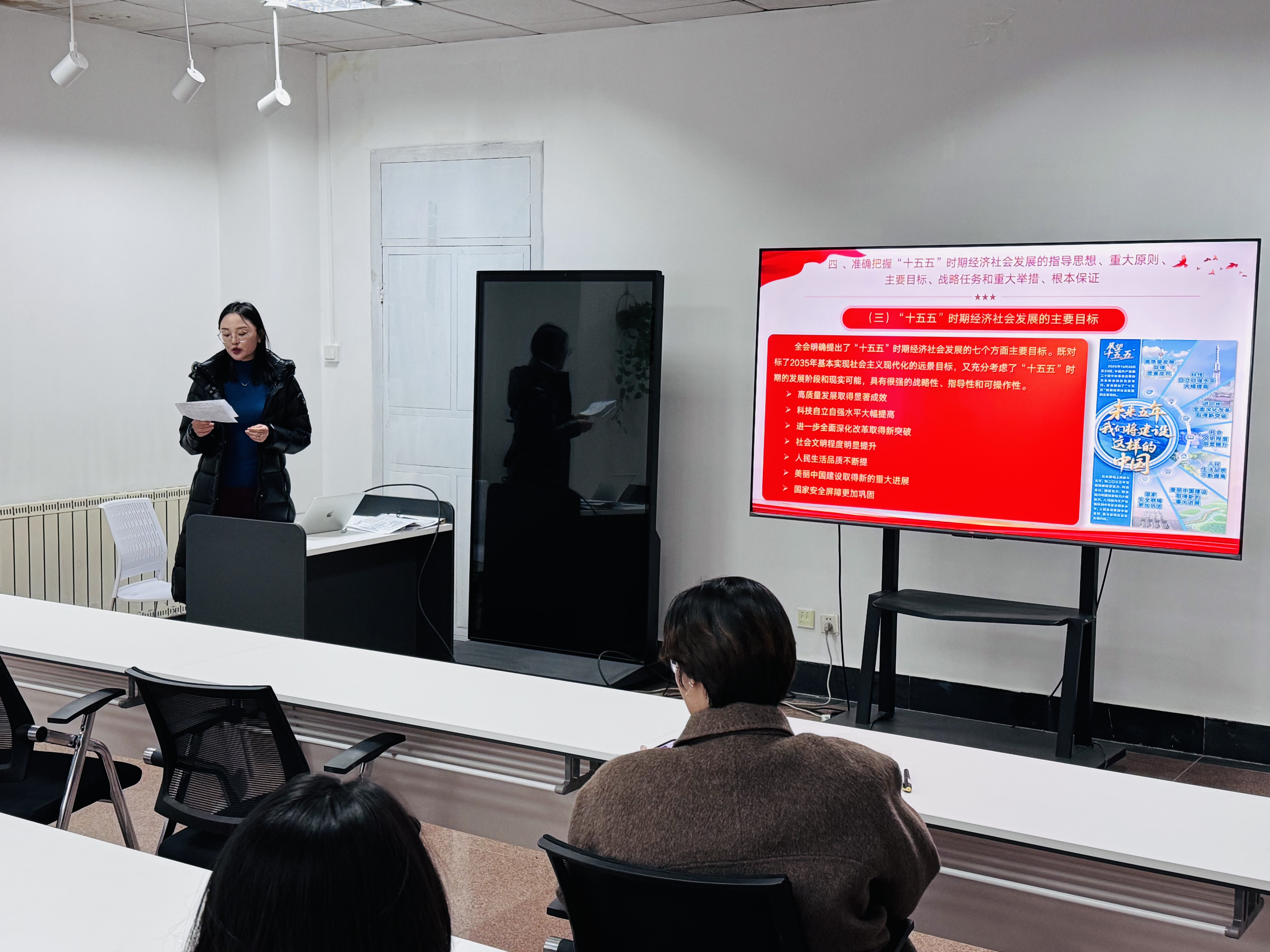 为深入学习贯彻党的二十届四中全会精神,引导青年学子准确把握全会核心要义与时代内涵,12月17日,太阳集团tyc234cc在崂山校区“一站式”学生服务中心社团活动室开展“党的二十届四中全会精神专题宣讲”活动。党委副书记兼副院长顾姗姗出席,孙媛媛老师主讲,全体青马工程培训班学员参加。