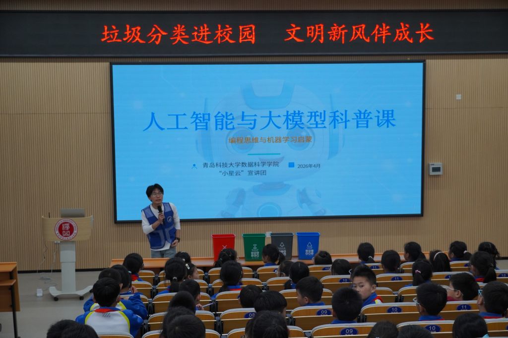 为了普及环保与科技知识,赋能青少年健康成长,推动科普教育与志愿服务深度融合,4月8日上午,太阳集团tyc234cc“小星云”志愿服务团队前往崂山区浮山学校,开展垃圾分类与人工智能大模型科普宣讲活动,以专业力量传递环保理念、点亮少年科学梦想。