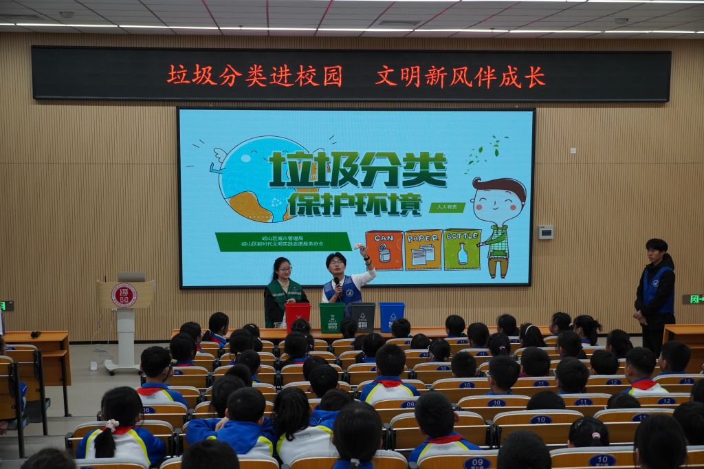 垃圾分类宣讲环节,志愿者通过动画演示、互动问答、趣味抢答等形式,系统讲解生活垃圾四分法标准、分类投放方法及生态环保意义,引导学生牢固树立绿色环保理念。