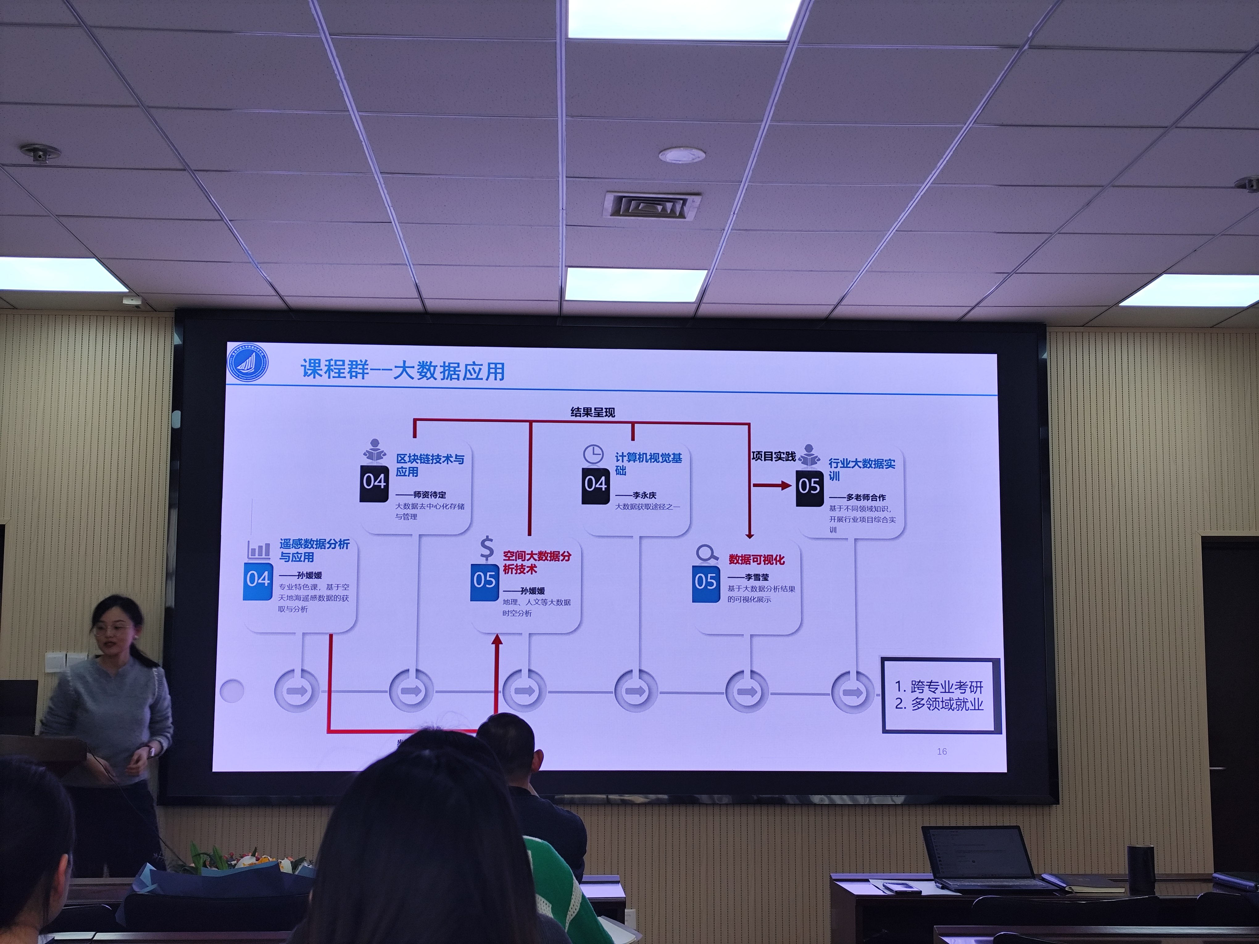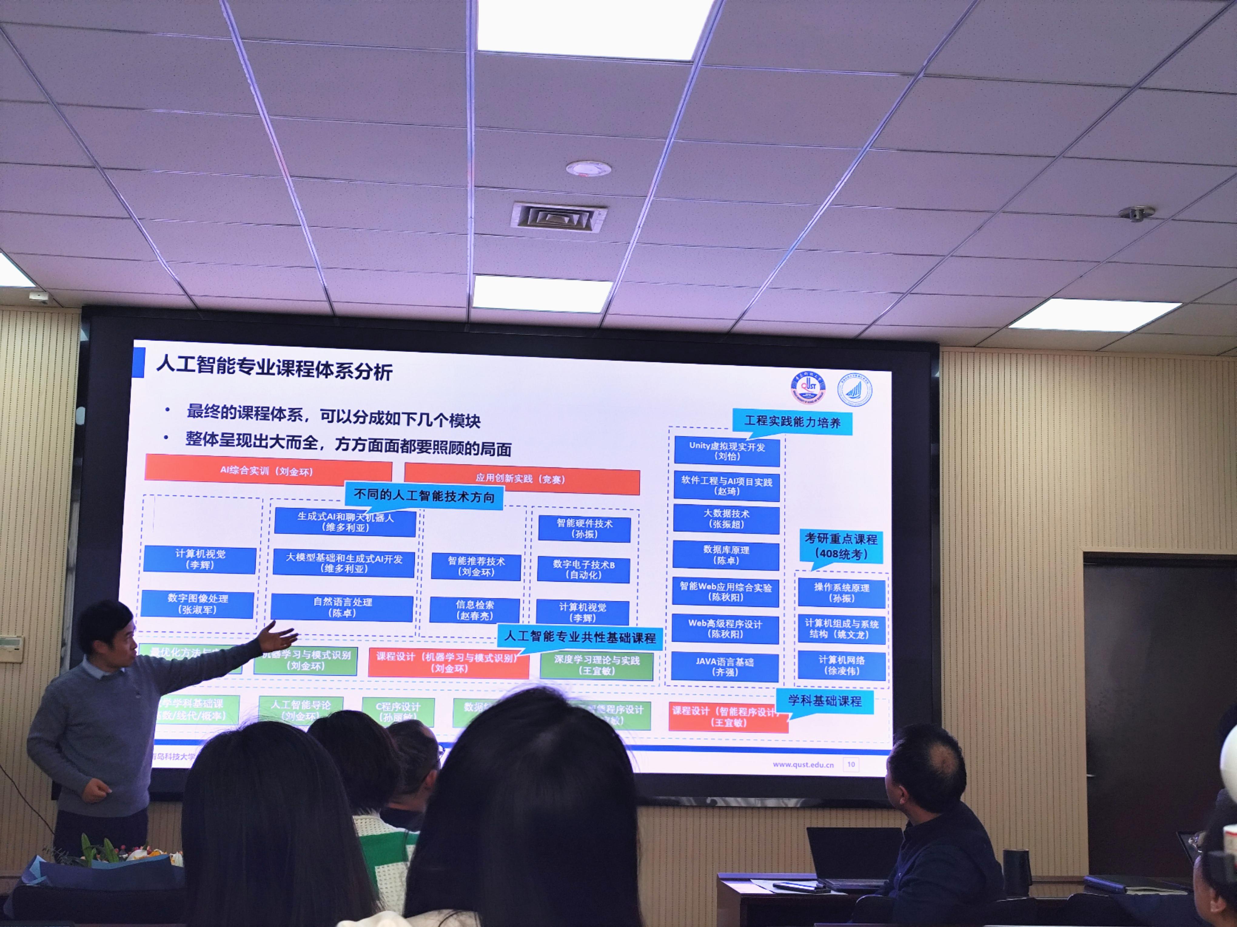 接着,数据科学与大数据技术专业负责人孙媛媛和人工智能专业负责人孙振通过专业图谱与案例讲解的方式,帮助老师们理解专业的全貌,以面带点进行案例驱动式教学改革,为老师们更好的把握单门课程的地位及教学目标方向起到了重要作用。