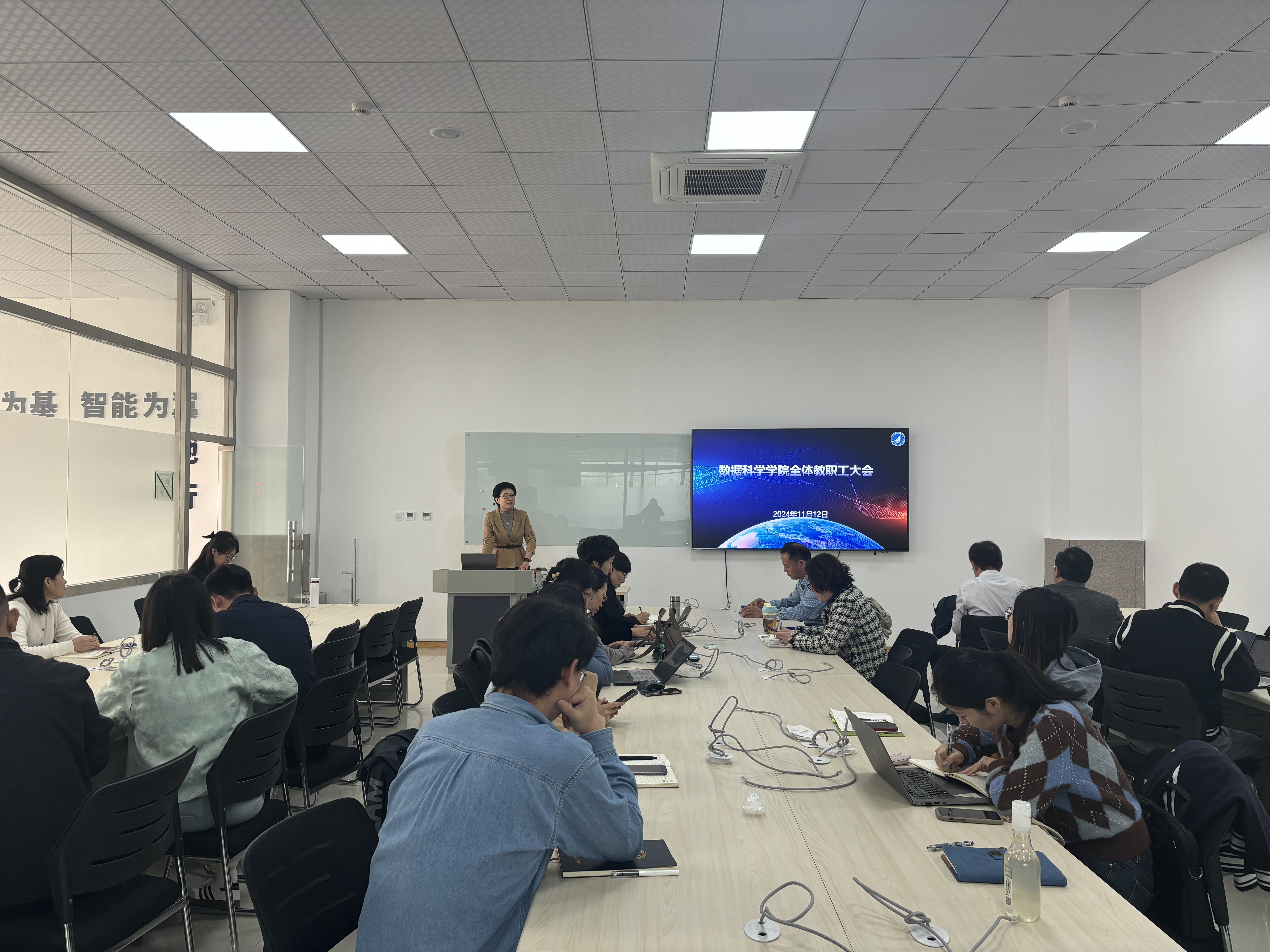 11月12日,太阳集团tyc234cc于数智教学实训中心召开全体教职工大会。学院党总支书记张玉主持会议。