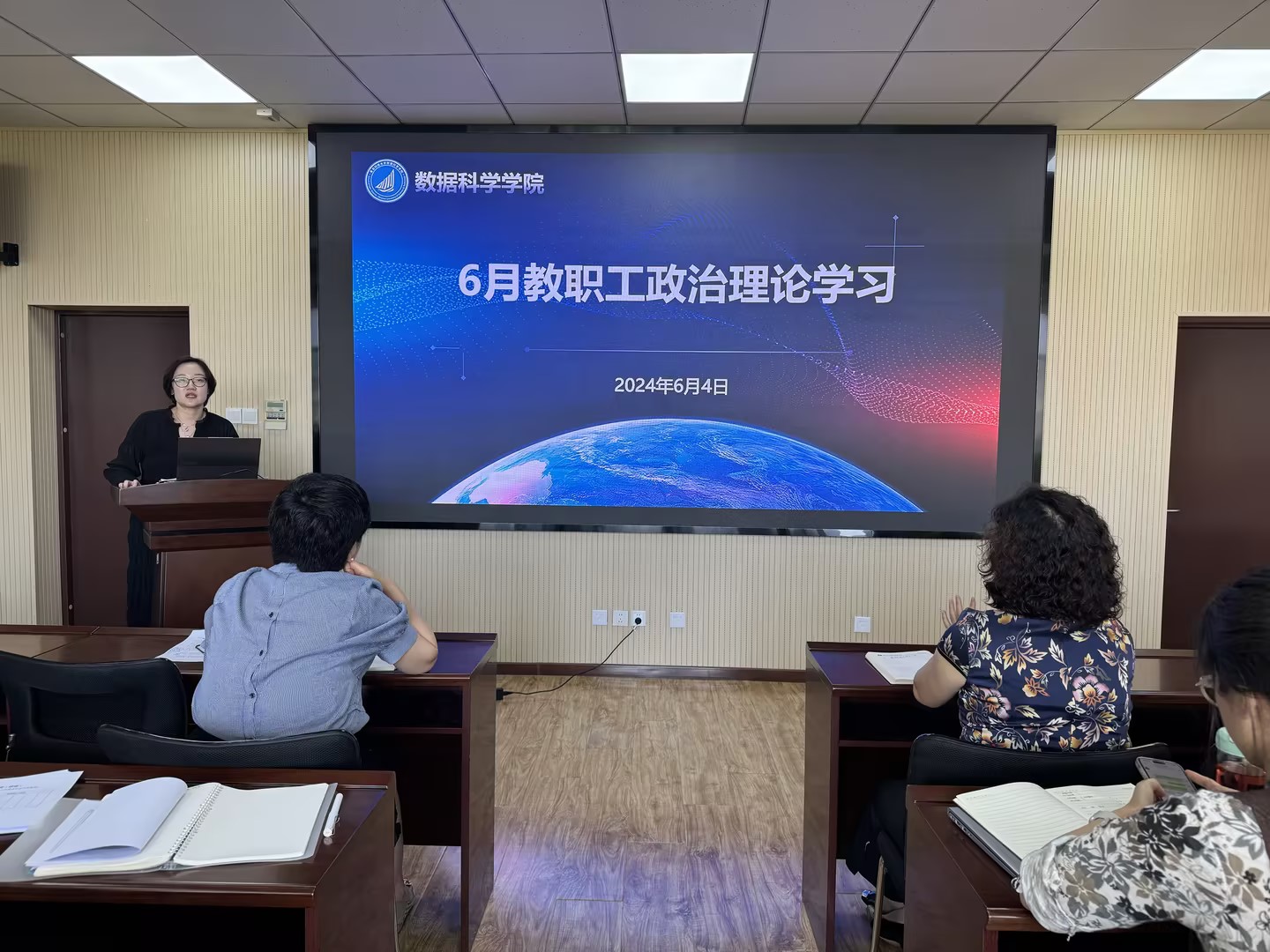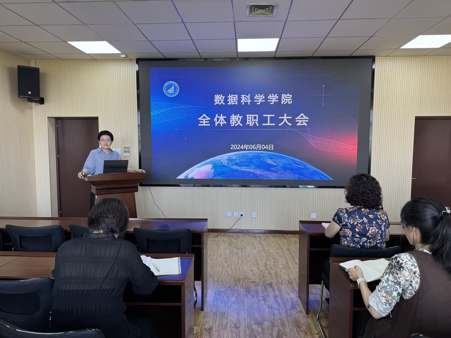 6月4日,太阳集团tyc234cc在图书馆A区4008召开全体教职工大会。学院党总支书记张玉主持会议。