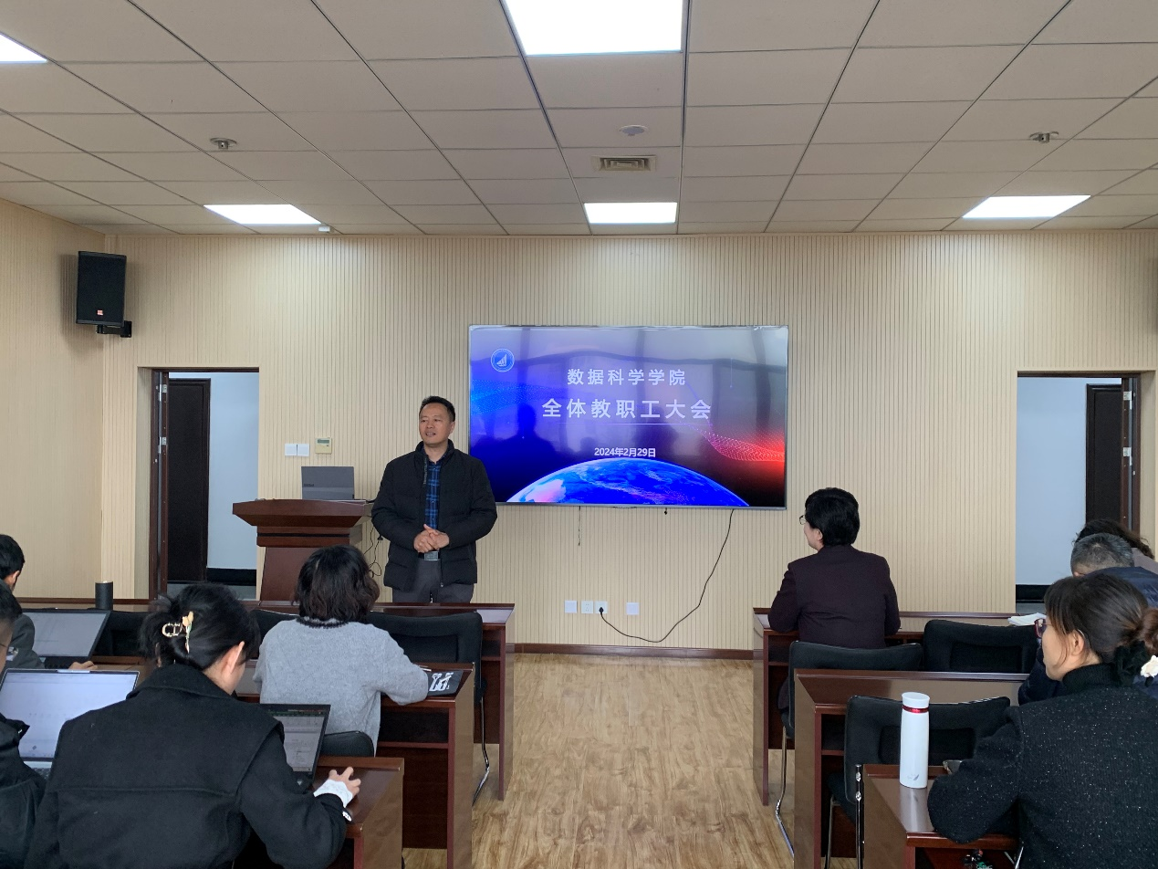 2月29日上午,太阳集团tyc234cc在图书馆A区4008会议室召开全体教职工大会,常务副院长杜军威主持会议。