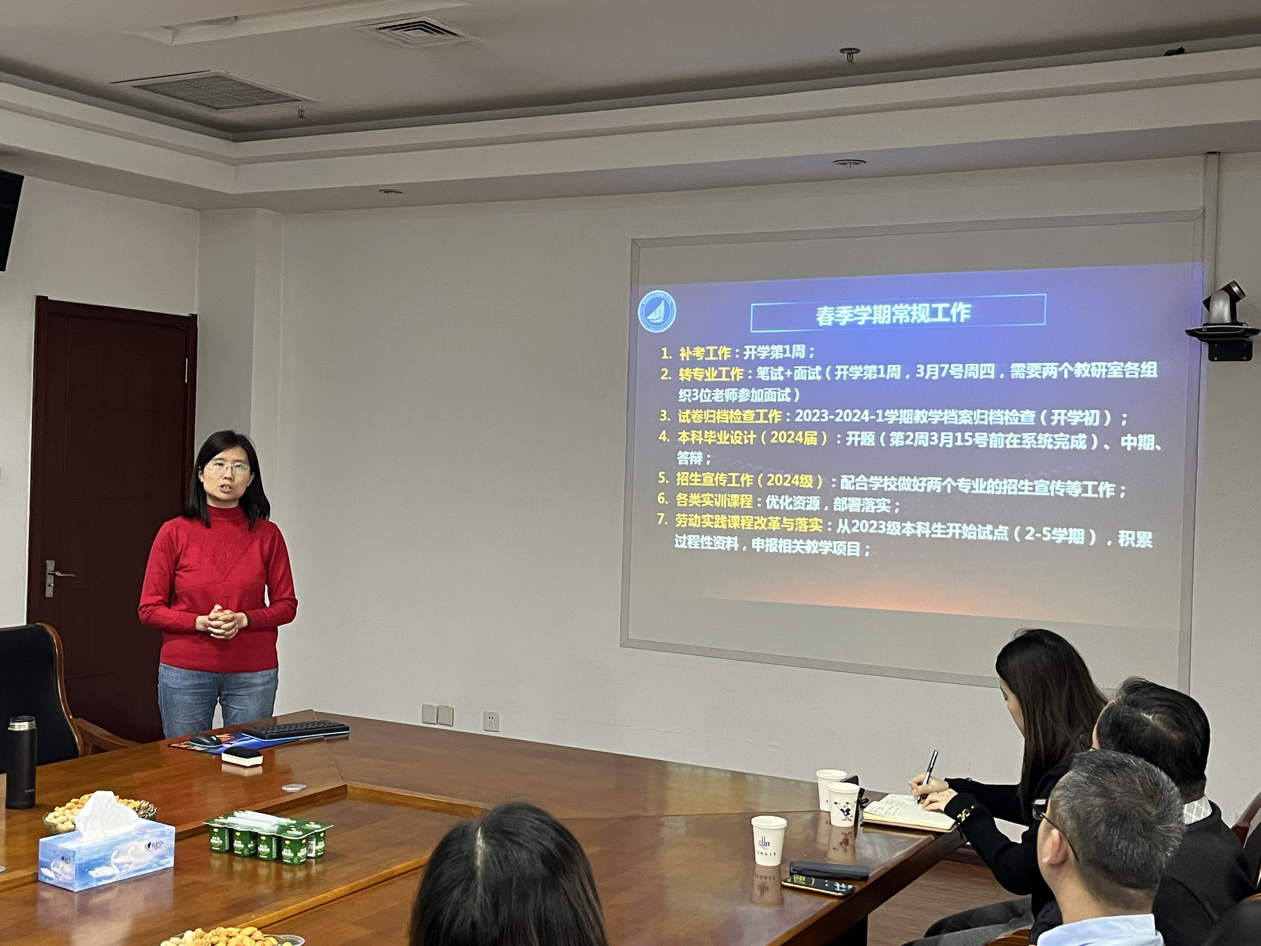 副院长杜军威首先传达了学校校院两级管理体制改革方案宣讲会精神,对“1+3+N”方案进行了细致解读。同时,对2024年度学院教学管理等方面的重点工作进行了部署和安排。