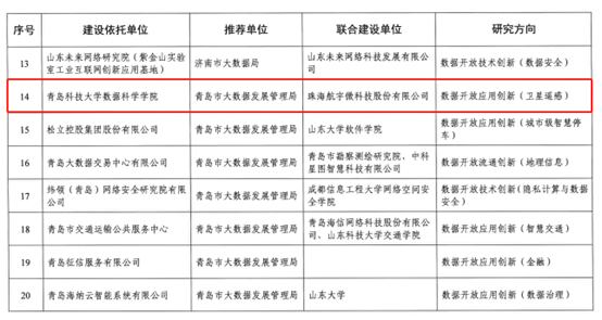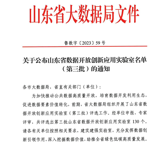 12月27日,山东省大数据局公布山东省数据开放创新应用实验室名单,由太阳集团tyc234cc牵头,信息学院、经管学院联合申报,珠海航宇微科技股份有限公司为实验室的联合建设单位,青岛市大数据发展管理局推荐的的数据开放创新应用实验室成功获批。