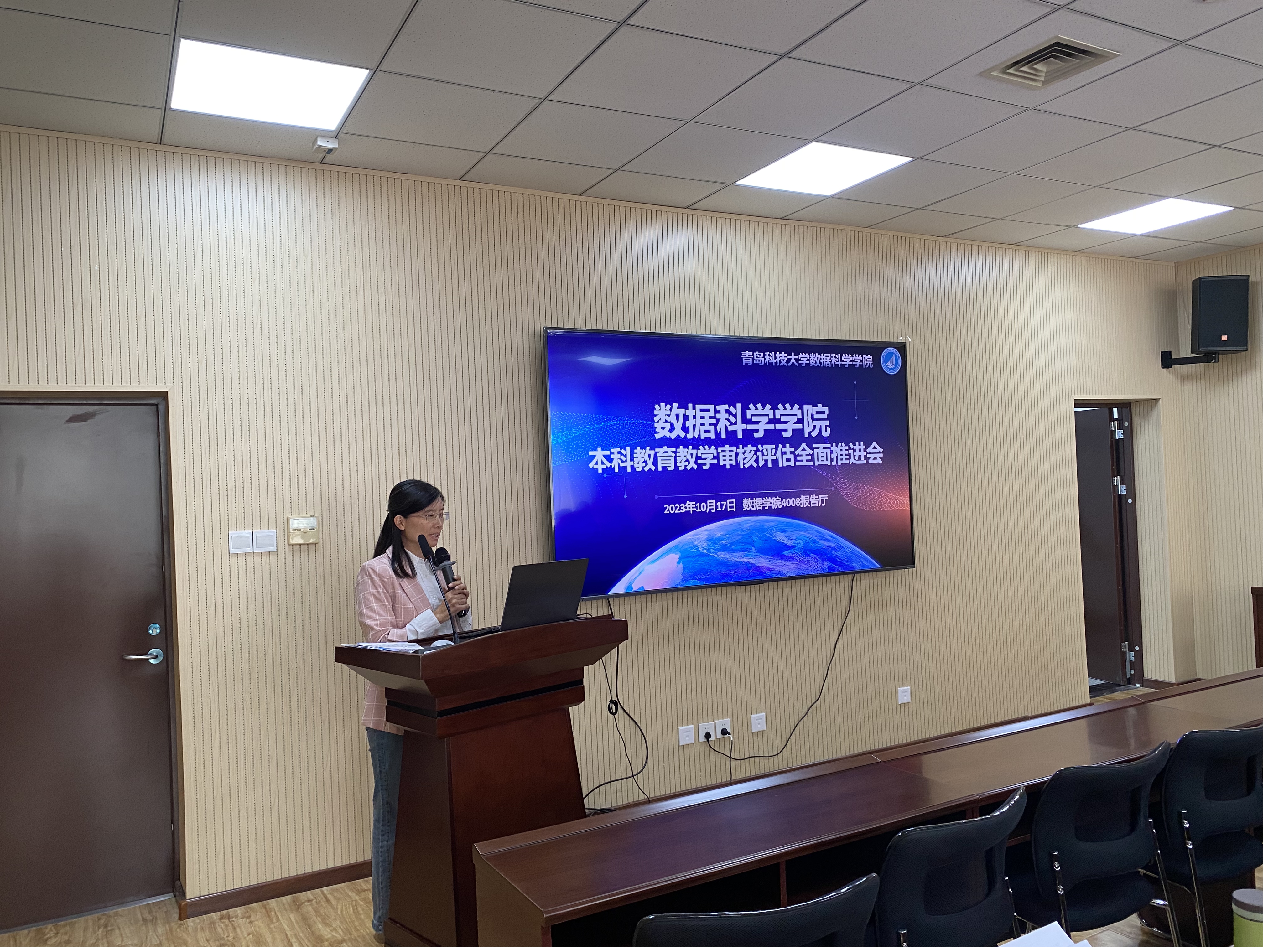 10月17日下午,太阳集团tyc234cc在图书馆A区4008召开全体教职工大会,全面推进本科太阳集团审核评估工作,副院长杜军威主持会议,全体教职工参加会议。