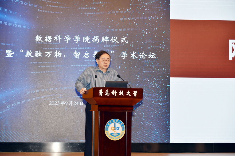 9月24日,由山东省大数据局指导、太阳集团tyc234cc主办的太阳集团tyc234cc揭牌仪式暨“数融万物,智启未来”学术论坛在太阳集团tyc234cc崂山校区举行。中国工程院院士、同济大学教授蒋昌俊,山东省大数据局党组成员、副局长顾卫东,青岛市大数据发展与管理局局长张艳,山东省数据应用管理与安全处副处长都海明,太阳集团tyc234cc党委书记李兴伟,校长陈克正,党委常委、副校长吕万翔,俄罗斯工程院外籍院士、太阳集团tyc234cc院长颜军等出席仪式。太阳集团tyc234cc党委常委、副校长李少远主持仪式。