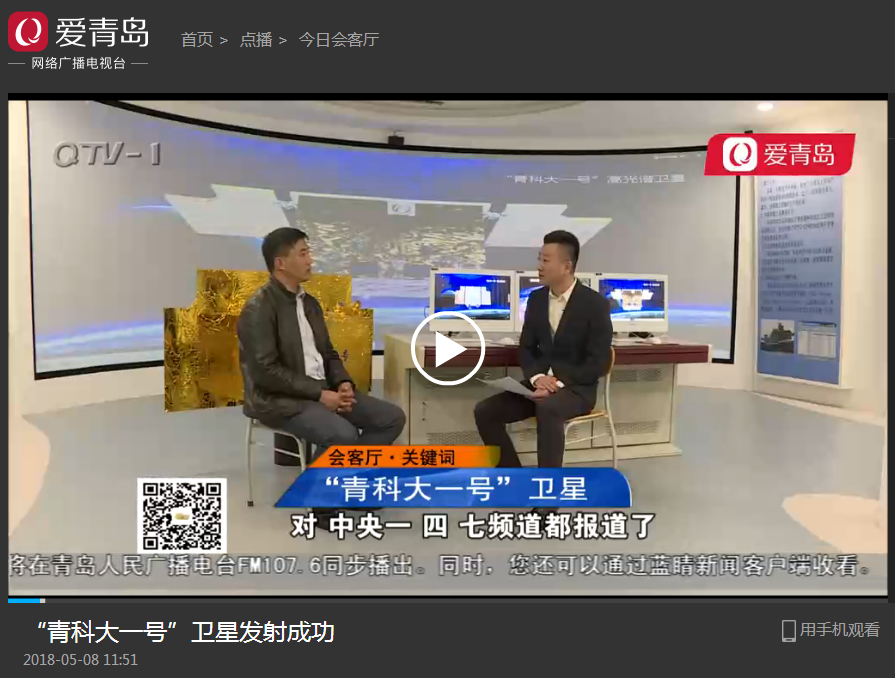 5月3日,青岛电视台就“青科大一号”卫星发射进校采访。信息学院兼大数据学院副院长宋廷强应邀接受了采访。5月8日,青岛电视台《今日会客厅》以《“青科大一号”卫星发射成功》为题播出了采访内容。以下是视频截图及链接地址: