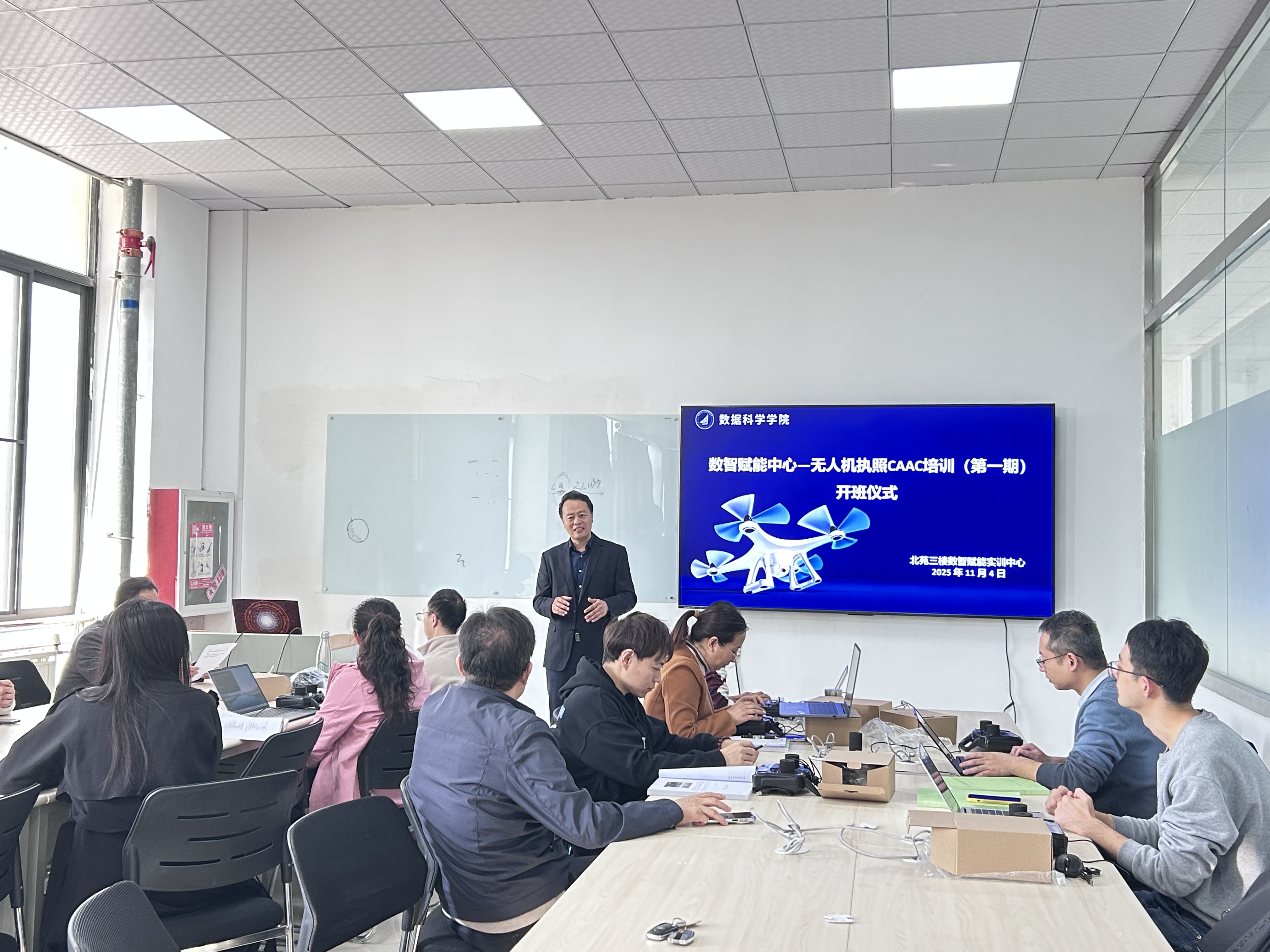 11月4日,太阳集团tyc234cc数智赋能中心无人机执照CAAC培训(第一期)在太阳集团tyc234cc崂山校区北苑三楼实训中心举行,学院院长助理王华东主持,太阳集团tyc234cc常务副院长杜军威致辞。