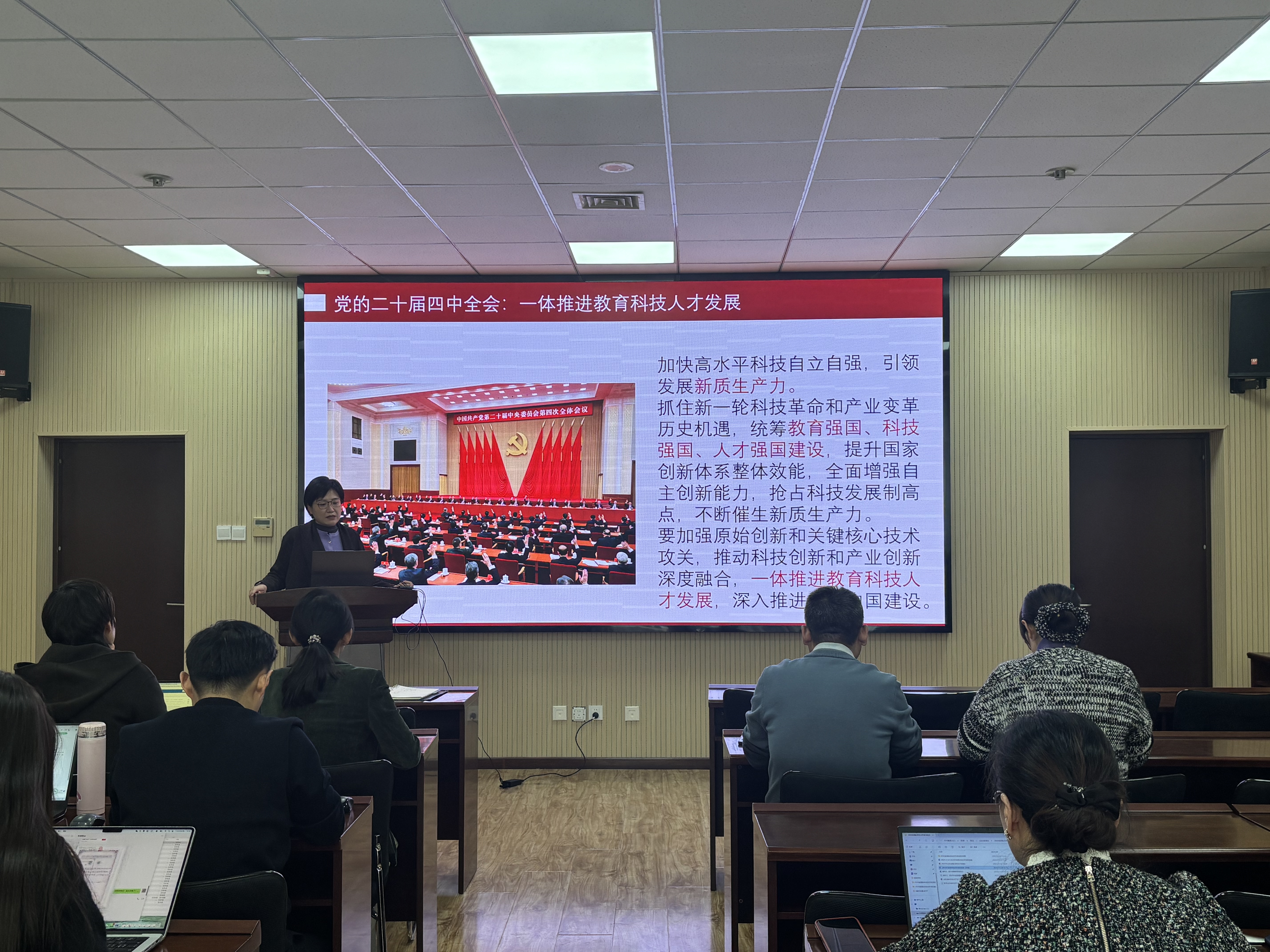 张玉重点围绕“一体推进教育、科技、人才发展”这一战略部署进行了深入解读。她谈到,教育是基础,科技是关键,人才是根本,三者有机联系、协同发力,是催生新质生产力、实现高水平科技自立自强、支撑高质量发展的核心要素。产业提升靠科技,科技突破靠创新,创新驱动靠人才,人才培育靠教育,是一个环环相扣、持续发力的系统工程。面对新一轮科技革命和产业变革的历史机遇,学院必须主动融入国家和学校发展大局,将学习贯彻全会精神与科学编制、有效实施学院“十五五”规划紧密结合起来,明确发展目标、凝练主攻方向、优化发展路径。全院教师要深刻认识数据科学和人工智能领域在国家创新体系中的战略地位,自觉将个人学术追求和职业发展融入立德树人根本任务和学院高质量发展之中。要在拔尖创新人才培养模式上勇于探索,在有组织科研攻关上展现新作为,实现智能化工方向和低空飞行技术创新方向新突破。