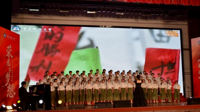比赛现场,在悠扬钢琴伴奏与精准指挥下,男声部深沉浑厚与女声部清亮婉转完美融合,将《光亮》中的青春信念与奋进力量娓娓道来。他们的演绎以真挚情感、默契配合和饱满的精神状态打动评委与观众,赢得阵阵掌声。
