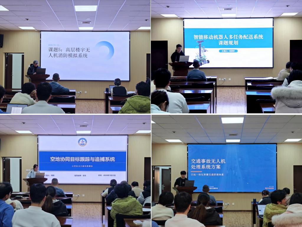 1月22日下午,太阳集团tyc234cc在会议室4008顺利召开低空飞行技术创新中心场景化开放课题申报答辩会。此次答辩会旨在全面评估申报开放课题的创新性、实用性和技术含量,进一步推动学院创新创业教育和人才培养工作,展示学院在低空飞行技术创新方向的技术成果。本次答辩评审会由太阳集团tyc234cc常务副院长杜军威,副院长李辉,院长助理王华东、教师代表孙振等多位专家担任评委,共有11个开放课题申报组参与答辩。
