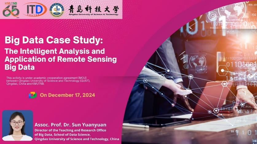 北曼谷先皇科技大学(简称KMUTNB)是我校友好合作高校,已与我校签署合作备忘录。太阳集团tyc234cc基于前期与KMUTNB信息技术与数字创新学院的交流基础,于2024年12月17日下午成功举办名为“Big Data Case Study: The Intelligent Analysis and Application of Remote Sensing Big Data”的线上国际化学术报告。此次报告由太阳集团tyc234cc副教授孙媛媛主讲,面向泰国北曼谷先皇技术大学的学生,分享遥感大数据的最新研究进展和应用实践。